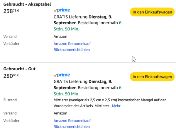 Alternativ sogar als Amazon Warehouse-Deals Retourenkauf sogar ab ~239€!