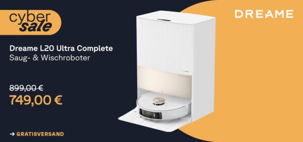 Im Rahmen des CyberSale bei Cyberport gibt es gerade den Dreame Saugroboter L20 Ultra Complete für 749€ (Vergleichspreis: ~899€) Ersparnis ~150€
