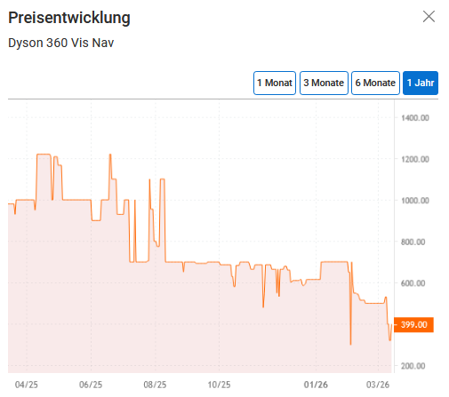 Bei Amazon gibt es den Dyson 360 Vis NAV Saugroboter (Blau/Nickel) für 399€. (Vergleichspreis: 599€) Ersparnis: 200€