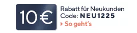 Außerdem gibt es wie gehabt den 10€ Neukundengutschein mit dem Code: NEU1225