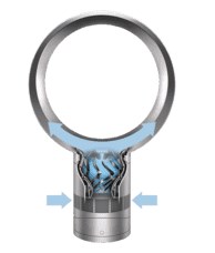 Das Besondere an dem Ventilator ist zweifelsohne, dass er keine Rotorflügel besitzt und somit auch ein kleiner Hingucker ist.