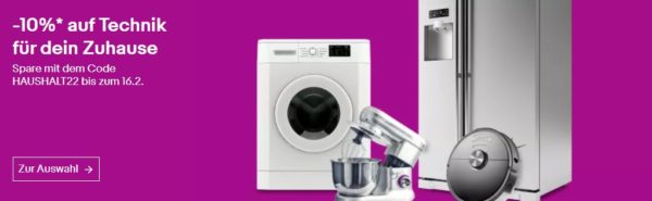 Bei ebay ist gerade eine neue Aktion gestartet bei der ihr 10% Rabatt auf ausgewählte Haushaltsgeräte bekommt.