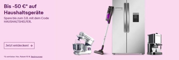 Bei ebay ist gerade eine neue Aktion gestartet bei der ihr 10% Rabatt auf Haushaltsgeräte bekommt.