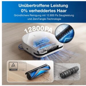 - DEEBOT X5 OMNI verhindert Haarverwicklungen und gewährleistet eine effiziente Saugkraft durch die Verwendung von Dual Comb Teeth Arrays für eine Strömungsführung und eine neu gestaltete Anti-Verwicklungs-Rollenbürste mit einer Struktur aus 21° flachen Borsten und nach außen drehenden schrägen Borsten. Dadurch erhalten die Benutzer eine problemlose Reinigungserfahrung und minimale Wartung, mit einer Verwicklungsrate von nur 0%.