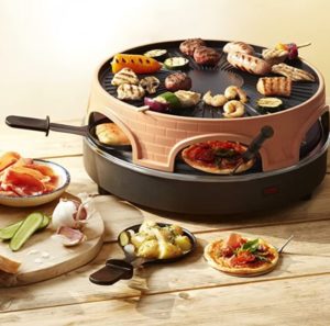 - Kleiner Tischofen zum Zubereiten von Mini-pizza, Raclette, Grillen oder alles zusammen zur gleichen Zeit!
