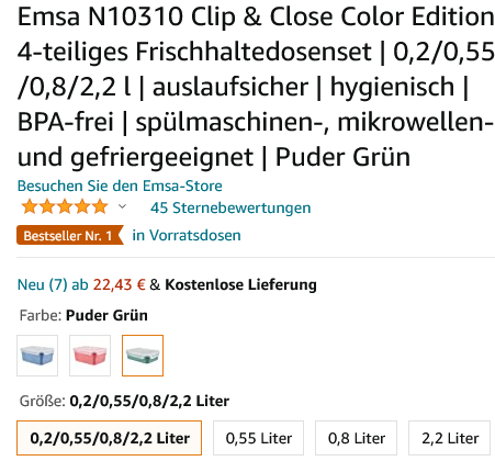 Amazon hat noch ein weiteres Emsa Frischhaltedosenset im Angebot: