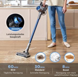 - Die LED-Anzeigen des Staubsauger Kabelloser zeigen drei Reinigungsmodi an: Eco, Standard und Enhanced. Außerdem gibt er in Echtzeit Auskunft über den Batteriestatus. Der LED-Scheinwerfer leuchtet unter Betten, Sofas und Möbeln, damit Sie jeden Winkel Ihrer Wohnung reinigen können