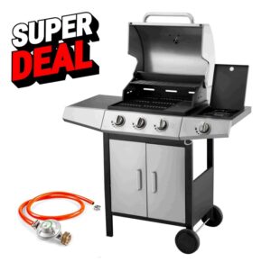 - Gasgrill mit drei Hauptbrennern und einem Seitenbrenner.