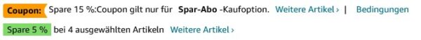 Möglich macht das Ganze das Abonnieren per Sparabo (kann man wieder kündigen per Klick) und der zusätzliche 15% Rabatt-Coupon (wird automatisch hinterlegt, oder klickt hier)