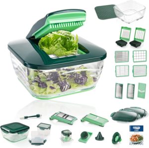 - 𝐆𝐫𝐨ß𝐞 𝐙𝐞𝐢𝐭𝐞𝐫𝐬𝐩𝐚𝐫𝐧𝐢𝐬 ✔ – Zaubern Sie schnelle Gerichte mit zahlreichen Schneidvarianten und blitzschnell austauschbaren Messereinsatz auf Restaurant-Niveau in kürzester Zeit. Mühelo-s, schnell und völlig ohne Strom. Auch als Gemueseschneider, Tomatenschneider, Eierschneider in gross mit Schüssel aus Glas
