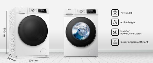 Dort gibt es die Hisense WFQA7014EVJM Waschmaschine mit Dampffunktion/ 7 kg /AquaStop/ 1400 U/min /15 Programme/ Inverter PowerDrive Motor/Edelstahltrommel/Kindersicherung/Trommelreinigung/Weiß