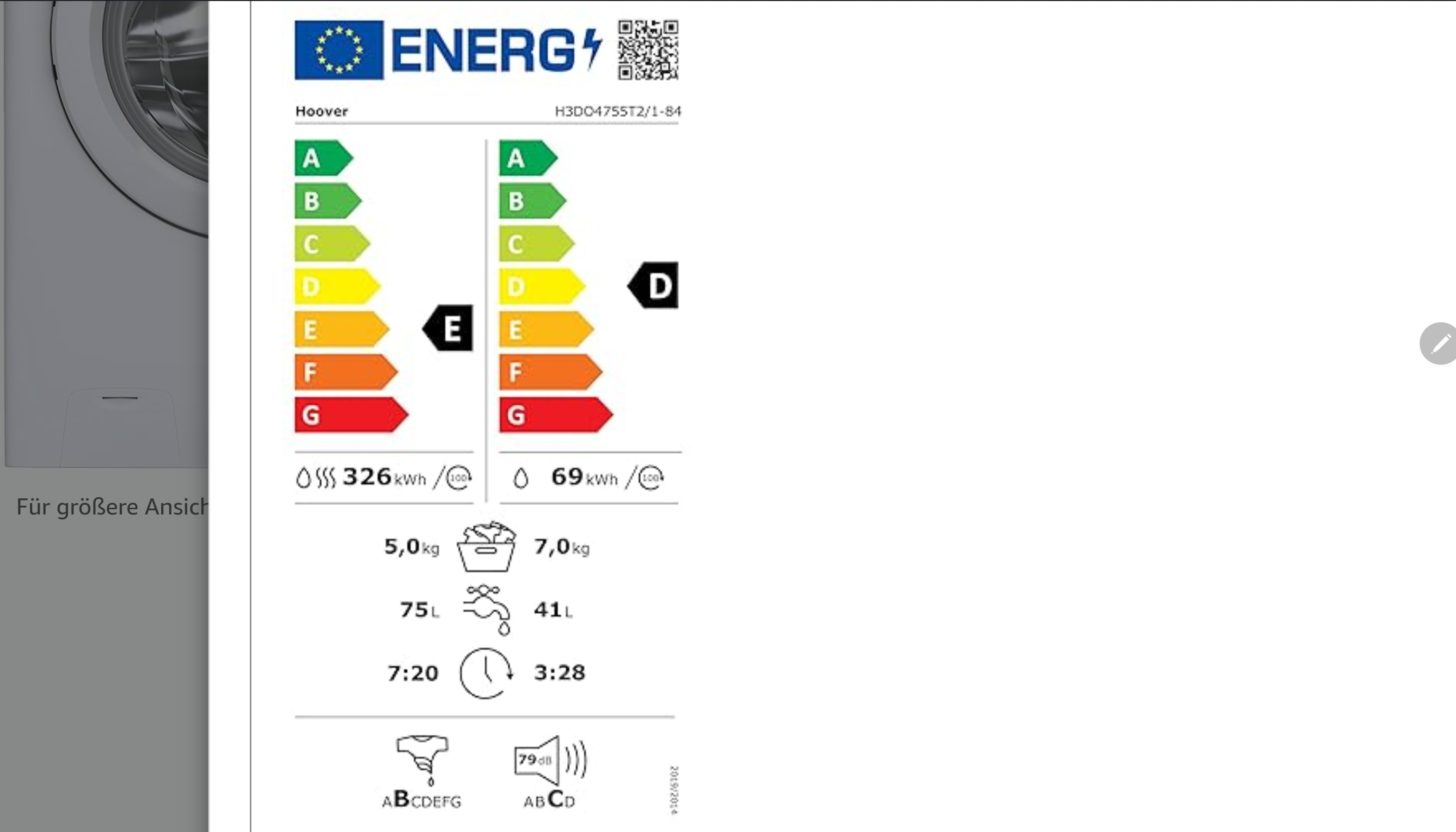 Bei Amazon gibt es derzeit den Hoover Waschtrockner (7/5 KG) für 361,22€ (Vergleichspreis: ~499€) Ersparnis ~138€