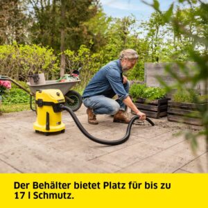 - Praktische Ausstattung: Der WD 3-18 verfügt über einen 17-l-Schmutzbehälter aus Kunststoff. Die Blasfunktion hilft dabei, losen Schmutz von Flächen zu beseitigen, die schwer zu erreichen sind
