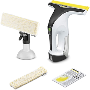 - Lieferumfang: Im Set sind der Kärcher Fenstersauger WV 4-4 Plus, eine Sprühflasche mit Mikrofaserbezug und 20-ml-Fensterreiniger-Konzentrat. Der Kärcher Battery Power 4/25 Akku ist separat erhältlich