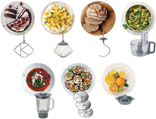 - Lebensmittelverarbeitung: Der Roboter verfügt über einen 1,4 l Lebensmittelprozessor mit 3 Trennscheiben, um die Optionen dieses Roboters zu erhöhen