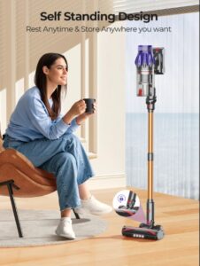 - Der kabellose Staubsauger verfügt über eine speziell für Böden und Teppiche entwickelte „V-förmige“ Walzenbürste, um eine gründliche Reinigung der Oberflächen zu gewährleisten und das Verheddern der Haare auf der Walzenbürste zu reduzieren. Mit der 2-in-1-Bürste, dem Spaltenwerkzeug und dem ausfahrbaren Schlauch können Sie Decken, Sofaspalten, Tische, Vorhänge und Autos für verschiedene Reinigungsbedürfnisse zu Hause reinigen.