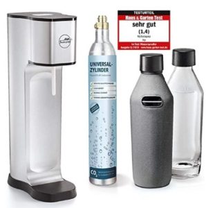 Bei Amazon bekommt ihr den mySodapop Joy Prestige inklusive 2 Glaskaraffen 2 Neopren Bottle-Shirts und 1 CO2-Zylinder für 60L Sprudelwasser für 30€ (Vergleichspreis ~58€) Ersparnis ~28€