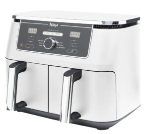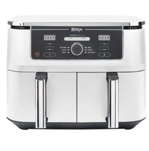 - Die NINJA AF400EUWH Foodi Max kommt mit zwei Frittierkörben, die eine Füllmenge von je 9,5 Litern bieten. Dank der Dual Zone-Technologie kannst du zwei verschiedene Gerichte gleichzeitig zubereiten, ohne dass sich die Aromen vermischen. Perfekt für einen vielseitigen und zeitsparenden Kochabend!