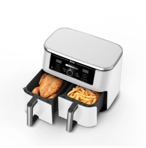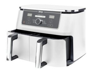- Die NINJA AF400EUWH Foodi Max kommt mit zwei Frittierkörben, die eine Füllmenge von je 9,5 Litern bieten. Dank der Dual Zone-Technologie kannst du zwei verschiedene Gerichte gleichzeitig zubereiten, ohne dass sich die Aromen vermischen. Perfekt für einen vielseitigen und zeitsparenden Kochabend!
