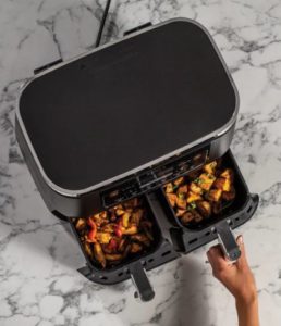 - Mehr als eine Heißluftfritteuse – Die Ninja Foodi Dual Zone bietet gleich 6 Zubereitungsfunktionen in einem Gerät: Max Crisp, Braten, Backen, Aufwärmen, Dörren und Heißluft-Frittieren