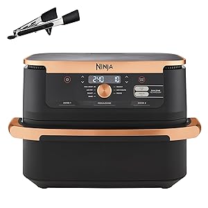 - BEINHALTET: Ninja Foodi FlexDrawer Air Fryer antihaftbeschichtet, spülmaschinenfeste 10,4L-Schublade, Trenner und 2x Knusperplatten, von Chefköchen erstelltes Rezeptheft & Silikonzange, Farbe: Schwarz & Kupfer