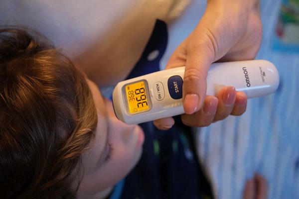 - Digitales kontaktloses Thermometer zum problemlosen Fiebermessen bei Kindern – sogar im Schlaf.