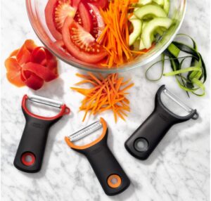 - OXO Good Grips 3-teiliges Schäler-/Peeler-Set mit drei Y-Schälern mit gerader Klinge für die mühelose Zubereitung von Obst oder Gemüse