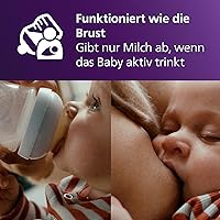 - Entspricht dem Stillen an der Brust²: Der Sauger gibt nur dann Milch ab, wenn Ihr Baby aktiv trinkt. Dies unterscheidet sich von den herkömmlichen Saugern mit freiem Nahrungsfluss. Wie beim Stillen kann es einige Zeit dauern, bis sich Ihr Baby daran gewöhnt hat