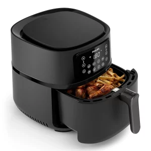 - Große Heißluftfritteuse: Mit einem 7,2-Liter-Behälter und einem 1,4 kg fassenden Korb können Sie alles zubereiten, von Pommes frites und Hähnchenkeulen bis hin zu Kuchen und gegrilltem Gemüse