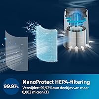 - 99,97 % PARTIKELENTFERNUNG BEI 0,003 MIKROMETERN(1): Die NanoProtect HEPA-Technologie fängt Schadstoffe ein und nutzt eine elektrostatische Ladung, um sie anzuziehen, wodurch bis zu 2-mal mehr Luft gereinigt wird als durch herkömmliche HEPA-H13-Filter(5).