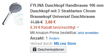Prime-Kunden bekommen bei Amazon einen wirklich guten Deal für einen Duschkopf. Ihr bekommt den FYLINA 106 mm Duschkopf mit 3 Strahlarten