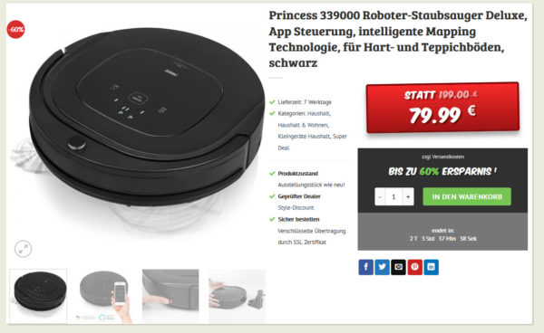 Bei DealClub bekommt ihr den Princess 3390000 Roboter Staubsauger für 79,99€ (Vergleichspreis Neuware: ~188,14€) (Bespreis rund ~150€)