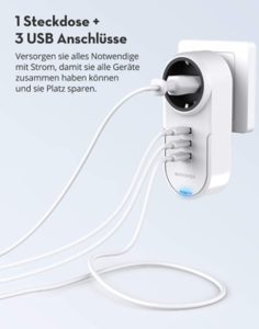 - Leicht und praktisch, kommt mit einer Steckdose und drei USB Anschlüssen, versorgen sie alles Notwendige inklusive traditioneller AC Geräte und USB Endgeräte mit Strom. Mit allem in einer kompakten Einheit sparen sie Platz anstatt weniger Geräte zu verwenden