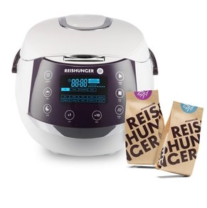 Reishunger Digitaler Reiskocher (7-Kochphase, Display, Keramik, Timer- & Warmhaltefunktion) + je 200g Bio Basmati Reis & Jasmin Reis für 99,99€