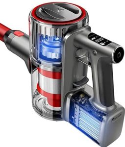 - OLED Display zur Anzeige von Saugmodus (Eco, Standard, Max), der verbleibenden Akkulaufzeit und so weiter