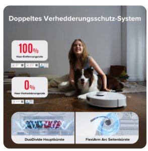 Mit Laser/Mapping (je nach Modell) fährt er effizient, erstellt Karten und reinigt gezielt Räume oder Zonen. - Allergikerfreundlich