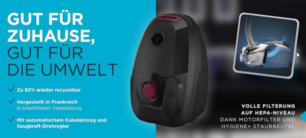 - Tadellose Hygiene: Entdecken Sie ein hygienischeres Wechselsystem für Staubbeutel, das jeden Kontakt mit Staub vermeidet, dank des Beutels Hygiene+, daher auch für Allergiker geeignet