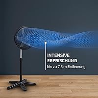 - INTENSIVE ERFRISCHUNG: Ein leistungsstarkes Gebläse mit kräftigem Luftstrom (bis zu 4 m/s) für extreme Erfrischung, die Sie auf der anderen Seite des Raumes spüren können – bei maximaler Geschwindigkeit bis zu 7,5 m entfernt