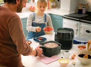 - Leicht zu reinigen – Antihaftbeschichteter Frittierkorb und Einsatz für knusprig-krosse Ergebnisse sind spülmaschinenfest* (getestet mit 100 Spülmaschinengängen)