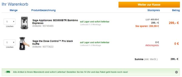 Die Kaffeemühle wird automatisch im Warenkorb hinzugefügt.