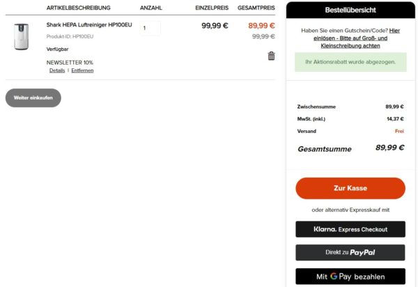Nutzt den 10% Newsletter-Gutschein und schon kommt ihr auf den genannten Preis.