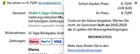 für 71,99€ (Vergleichspreis: ~87€; außerhalb der MM/Saturn-Gruppe) Ersparnis ~15€
