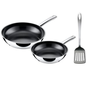 - Inhalt: 2x Bratpfanne beschichtet 20 cm / 24 cm – optimal für Herdplatten mit Ø 14,5 cm / 18 cm, 1x Pfannenwender (Länge 31 cm)