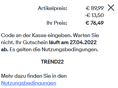 Bei dem Angebot handelt es sich um ein befristetes Angebot bis zum 27.04.2022 23:59 Uhr.