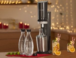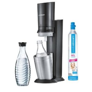 - Sodastream Crystal: Der Wassersprudler zeichnet sich durch elegantes Design und edle spülmaschinenfeste Glaskaraffen aus. Für frischen prickelnden Genuss – ganz ohne Schleppen