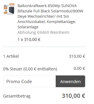 Beim Dealclub gibt es das SUNOVA 850Wp Balkonkraftwerk für 310€ + 60€ Versand oder kostenlose Selbstabholung in 69469 Weinheim (in der Nähe von Mannheim/Heidelberg/Darmstadt) (Vergleichspreis: ~449€) Ersparnis bis zu ~139€