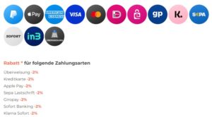 Euch stehen hier verschiedene Zahlungsarten zur Auswahl, bei denen ihr nochmal 2% Rabatt bekommt (ist im Preis bereits berücksichtigt)