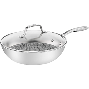- Dreischichtige Wokpfanne: Aus Edelstahl/Aluminium/Edelstahl für perfektes Anbraten und gleichmäßiges Garen, mit einer um 50 Percentage verbesserten Hitzeverteilung als bei einem einschichtigen Edelstahlprodukt