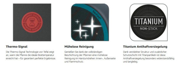 - THERMO-SIGNAL: Die Thermo-Signal-Technologie von Tefal zeigt an, wann die Pfanne die ideale Brattemperatur erreicht hat – für garantiert ideale Ergebnisse bei Konsistenz, Farbe und Geschmack; So gelingen leckere und geschmacksintensive Speisen jeden Tag