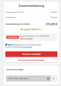 Nutzt den 10% Newsletter-Gutschein und schon kommt ihr auf den genannten Preis.